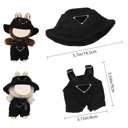 17cm Clothes Set For Doll , Handcrafted Dress Up Unique Overalls Set & Style Hat Cute Clothes For 17cm Doll Accessories Suit, Cute Clothes For Doll Not Included (Black)