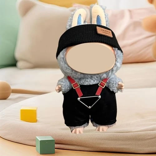 17cm Doll Clothes For Labubu, 2-Piece Clothes For Dolls Outfit, Accessories For Cute Dolls Clothes, Black Hat + Overalls, No Doll Included