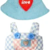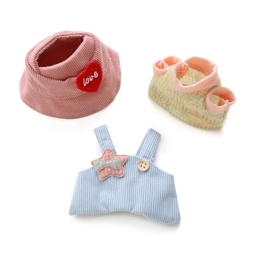 17cm Doll Clothes – Kawaii Chic Style Set For 17cm Dolls, Cute Doll Outfit With Accessories – Colorful T-Shirt + Star Light Blue Romper + Heart Shaped Pink Hat (NO Doll)