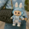 This blue streetwear outfit is designed for 6.69in dolls and includes 5 accessories: headphone-style headband, plaid jacket, hoodie sweatshirt, casual white pants, and shoes. The outfit is fresh and modern, suitable for daily dress-up, display, or collection. Note: Doll is not included. Bunny ears are part of the doll itself, not included in the outfit.