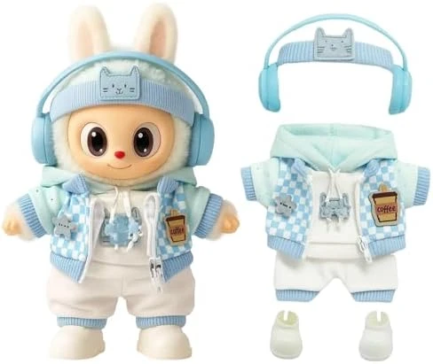 4.17/513 reviews for Blue Plaid Plush Doll Clothes For 17cm/6.69in – Headphones, Hoodie, Jacket, Pants & Shoes – Removable Costume (Fit For Labubu Doll Not Included)Add a review