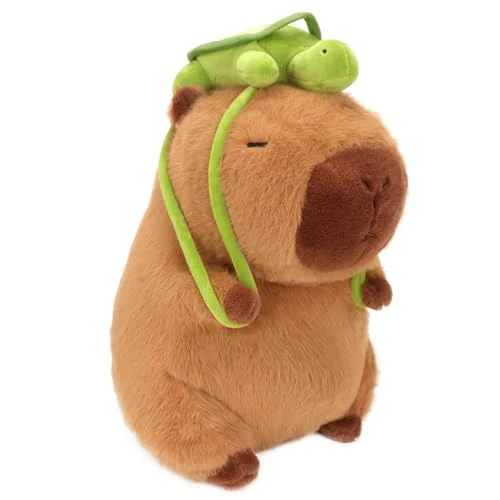 Capybara Plush Toy – 9 Inch Cute Capybara Stuffed Animal With Turtle Backpack, Kawaii Capibara Plushie For Kids And Adults