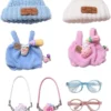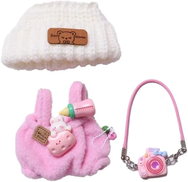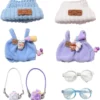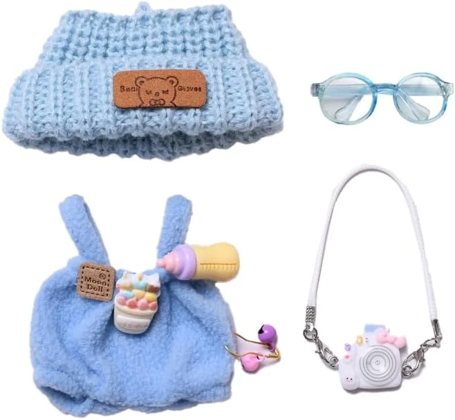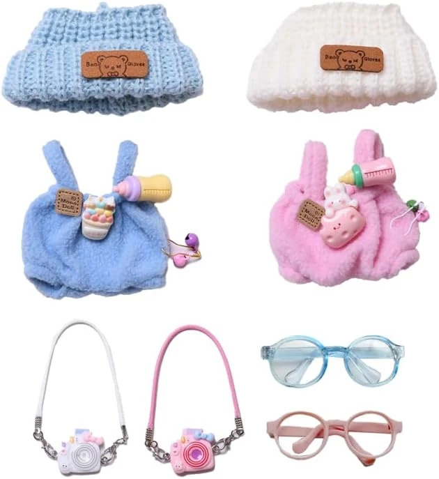 - ACCESSORY DETAILS: 17cm doll outfit for labubu includes matching knitted beanies with cute bear logo patches and round-frame glasses in coordinating colors