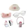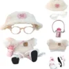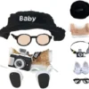 Clothes For Labub, 5-Piece 17cm Clothes For Labub Set With Accessories – Includes Light Pink Velvet Heart Hat, Mini Camera, Glasses & Canvas Shoes (Doll Not Included)(A)