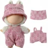 Dress up your 17cm doll in style with this adorable pink and white patterned outfit set. This charming two-piece ensemble features a cozy winter-themed design with plush white trim and adorable ear details on the hood. The set includes a hooded top and matching bottoms crafted in a distinctive pink diagonal weave fabric with delicate white pattern details throughout. The outfit is specially sized to fit 17cm dolls perfectly, with easy-to-use design for simple dressing and undressing. The attention to detail in this handcrafted clothing set makes it a perfect accessory for collectors and doll enthusiasts. Please note that this listing is for the clothing set only – doll is not included. The premium construction ensures the outfit will maintain its shape and appearance through gentle play and display. Give your doll a fashionable new look with this sweet and stylish clothing set.
