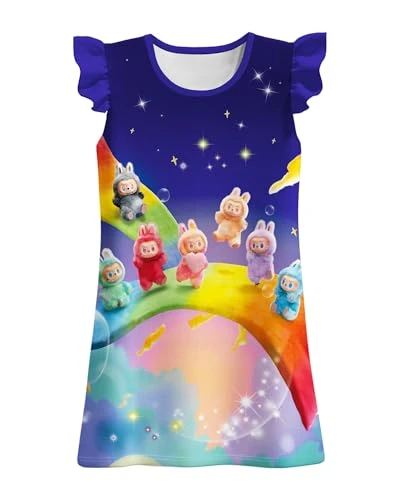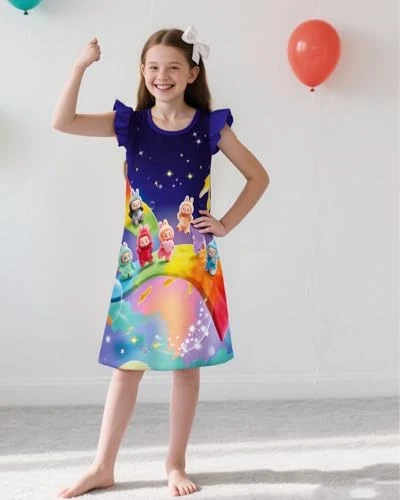 Cute Girls Dress Gown Cute Casual Home Outfit Flutter Sleeves Party Wear Clothes For Kids 5-12Y