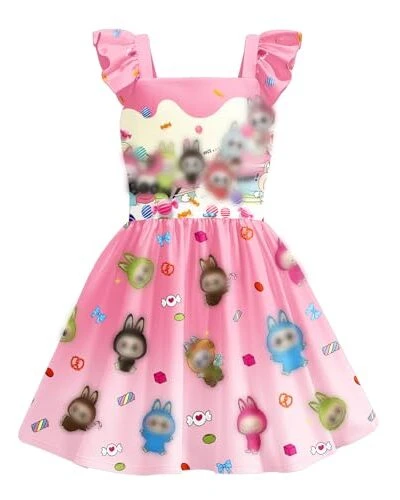 Girls Dress Cute Monster Print Daily Wear For 5-12 Years Kids Party Gift