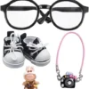 Doll Accessories Set For Labubu Included Mini Glasses, Camera And Mini Shoes For Doll, Dress Up Accessories For 17cm Doll, Mini Costume Supplies For Doll (Black)