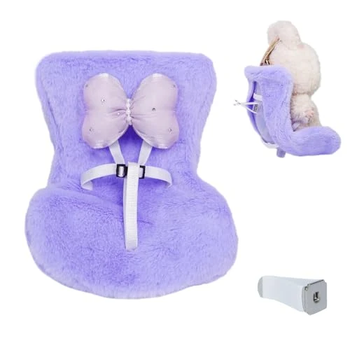 Labu Doll Car Seat Accessories – Safety Travel Carrier For 17cm Macaron Dolls (Fits LABU)| Kawaii Miniature Car Ride & Display Stand | Cute Collectible Figure Case DollCarSeat(Purple)