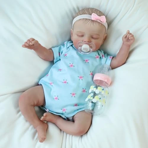 Lifelike Reborn Baby Dolls-20 Inch Sleeping Realistic Newborn Baby Dolls, Soft Cloth Body With Feeding Toy For Kids Age 3 +