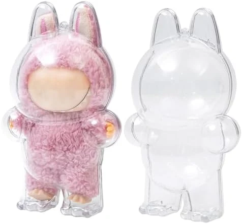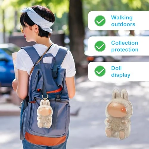 Protective Case For LABUBU, Clear Figure Display Bag With Keychain, Plastic Protective Cover, Storage Transparent PVC Bag Hanging Model (Doll Not Include, Style B Sitting)