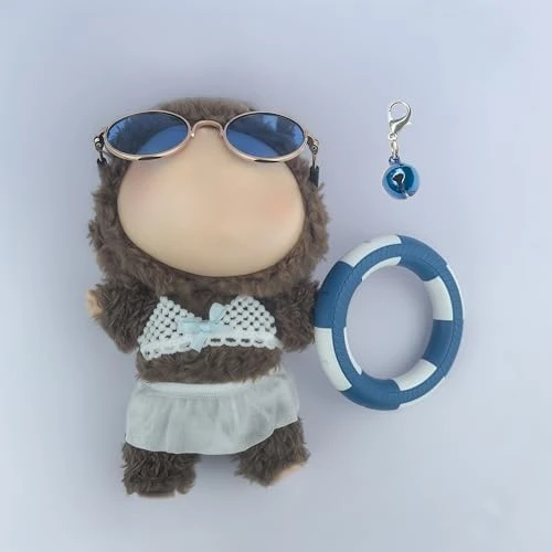 Swimsuit Party For Labubu(No Dolls),5-Piece Set Including Clothes, Skirt, Pink Glasses, Pink Swimming Ring And Bell, Swimsuit Set, Hot Party Style, Summer Beach Style, Pink Bow Outfit