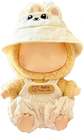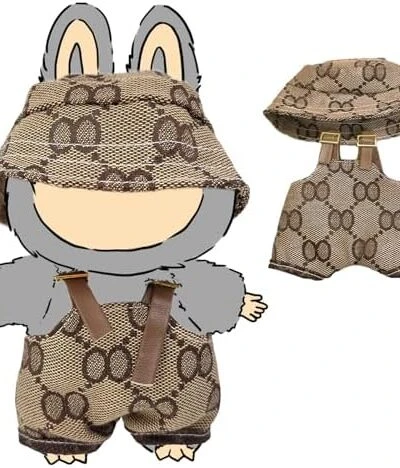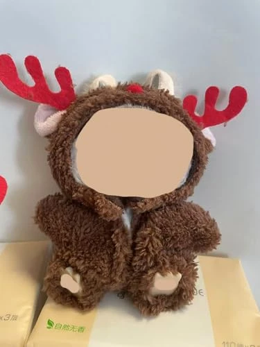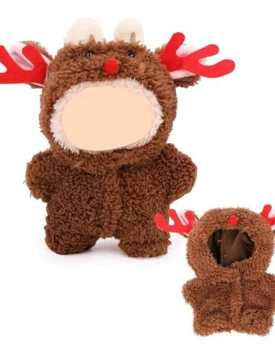 17CM Doll Clothes Set, Hat Overalls Accessories Suit Funny Cute Set Compatible For Standing/Sitting LABUBU Or Any 17cm/6.7inch Doll (Christmas Deer Jumpsuit)