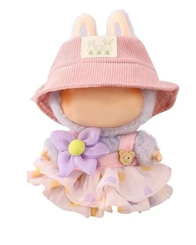 17cm Doll Clothes, Clothes For Dolls Outfit, Accessories For 17cm Dolls Clothes, Cute Bear Dress + Casual Hat, Stylish Adorable Dolls Clothes Accessories (No Doll) (Pink)
