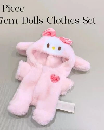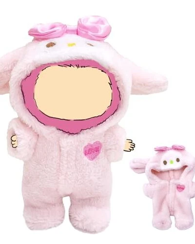 17cm Doll Clothes, Outfits For Clothes Set, Dolls Keychain Accessories, Faking Animal Style Outfit Jumpsuit (Bunny Pink)