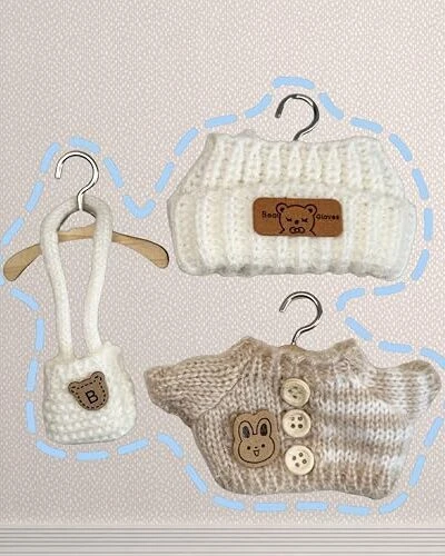 3-Piece Handcrafted Crochet Doll Clothes – Compatible With 5.91-6.7inch (15-17cm) Dolls As Accessories Only, Premium Dolls Outfit With Accessories, Hand Crocheted Hat, Sweaters, Bag (White)