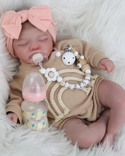 Lifelike Reborn Baby Dolls-20 Inch Sleeping Realistic Newborn Baby Dolls, Soft Cloth Body With Feeding Toy For Kids Age 3 +