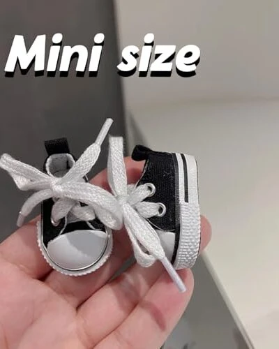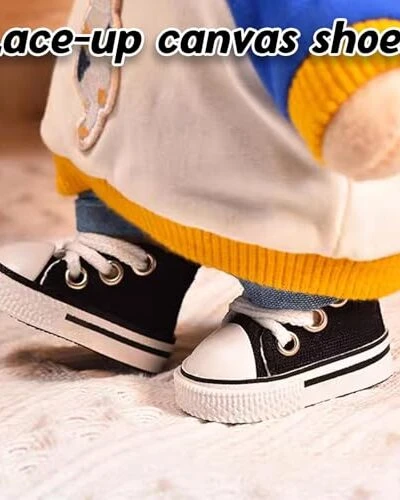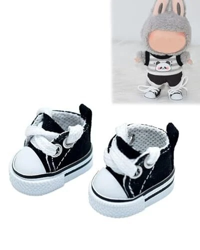 Mini Doll Shoes, 1 Pair Cute Lace Up Canvas Sneakers Compatible For 17cm/15cm Doll Shoes Toy Outfit Accessories(Black)