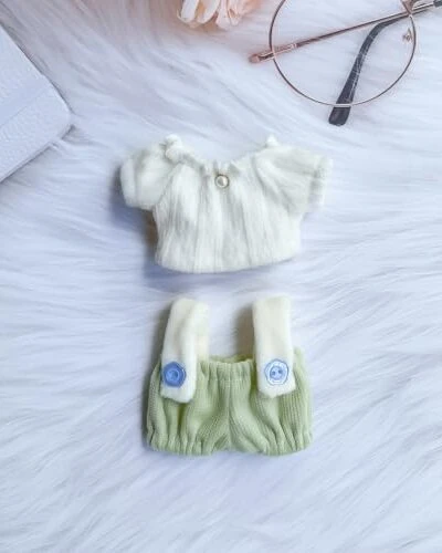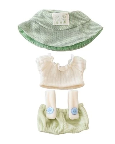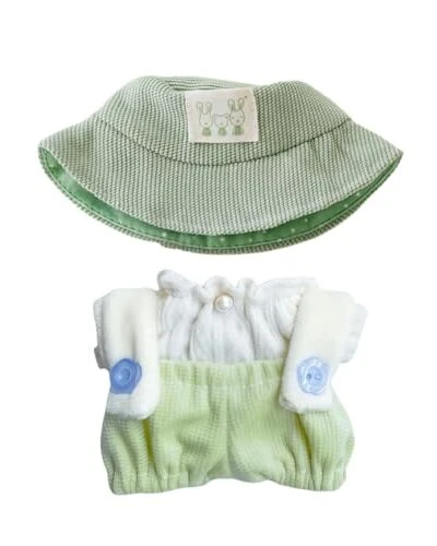 Clothes For Dolls Accessories (No Doll), Cute Outfit Set 3 Pieces Bib Pants Suitable For 15 & 17cm Doll Suit, Stylish Dress Up Overalls Doll Clothing Set Replacement With Hat Clothes Green