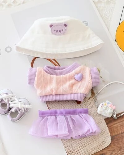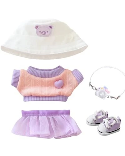 Clothes For Dolls Accessories, Stylish Kawaii Purple Outfit Set 5 Pieces Suitable For 15cm 17cm Doll (No Doll Included), Doll Hat Clothing Set Replacement