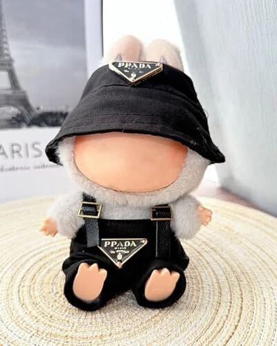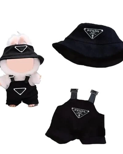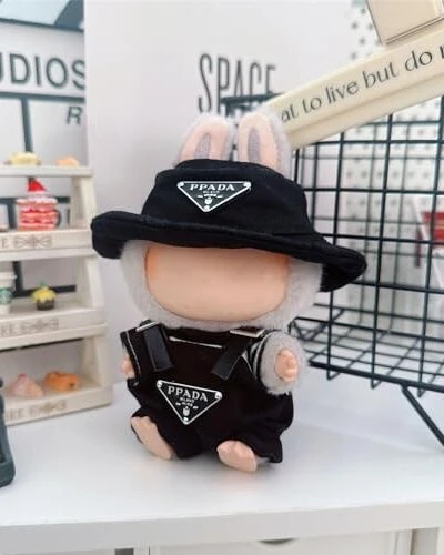 Clothes For Labubu(NO Doll) , Hat & Overalls Set For Labubu Clothes 15cm/17cm Doll Accessories Suit, Doll Outfit Stylish Doll Clothes For Doll (Black)