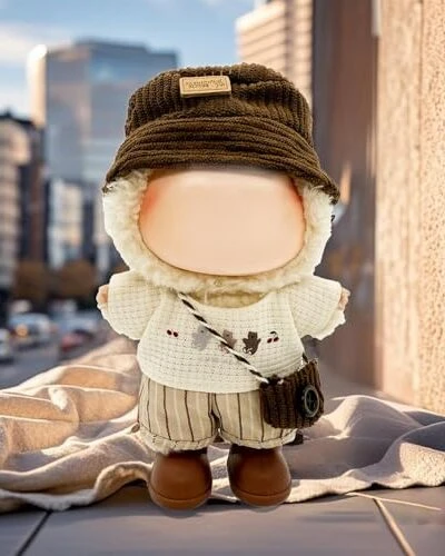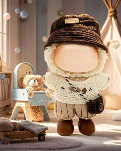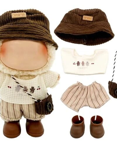 Clothes For Labuu, 2-Piece 17cm Clothes & Hat Set For Labuu, Exquisite Accessories For Labu, Doll Accessories Only Clothes (No Doll) (2PC-Brown)
