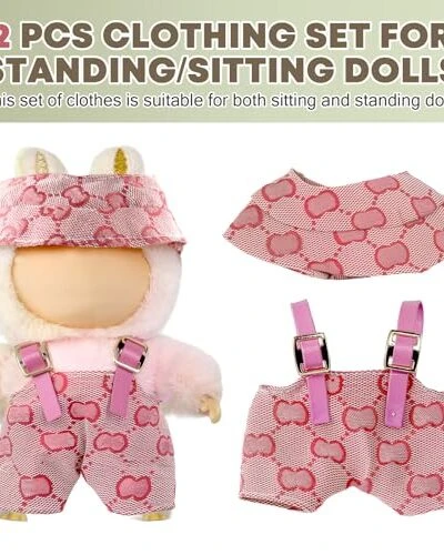 Clothes For LABUBU 17cm Doll (NO Doll),Outfit For LABUBU Doll, Premium Outfit ,Hat & Overalls Set For LABUBU Dress Up,Accessories For LABUBU (C)
